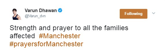 Varun Dhawan mourns for Manchester Arena victims.