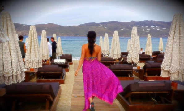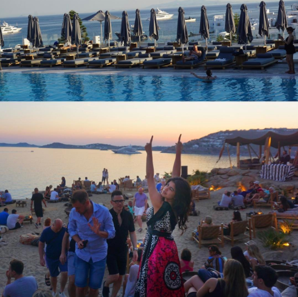 Sharing this picture, she wrote, "Scorpios Mykonos reminds me of Goa. Feel at home here!!! When you're staying at the @myconiancollectionhotels Myconian Ambassador it's an easy and gorgeous walk to get to @scorpiosmyk which is my favorite place for sunset in Mykonos. The Myconian Ambassador is the best location to stay at in my opinion, close to everything if you like to be in the center of it all, choose this one!"