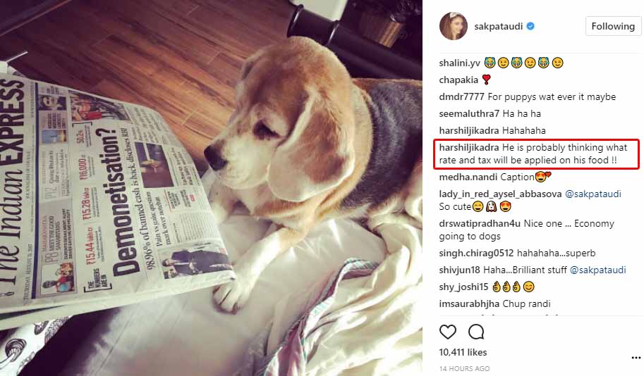 Soha Ali Khan is an intellectual woman who has studied modern history at Oxford and earned a masters degree in International Relations from London School of Economics and Political Science. So, of course, she has a good amount of knowledge about our current economy and she proved it with a humourous post on demonetisation policy. Well, the actress took to her Instagram page and posted a picture of her dog Masti staring at a newspaper which has the headlines of ‘Demonetisation?’. Sharing the picture, she captioned it as, “And Masti wonders if, post demonetisation, the economy is going to the dogs ?” (Also Read: Dressed to the nines! Do you know what’s Soha’s favourite label for maternity looks?)