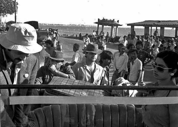 Sridevi and director Shekhar Kapur can be seen discussing a scene on the sets.