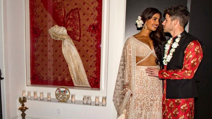 Nick Jonas and Priyanka’s memorabilia from their wedding: The couple hosted an intimate Diwali bash for her friends and family in the US and the actress had shared pictures from the party. One picture shows Nick and Priyanka posing in front of a memorabilia from their wedding. The couple framed their ‘gathbandhan’, which symbolises the union of the bride and the groom in a sacramental bond for the rest of their lives. For the gathbandhan, one end of the bride’s garment (a pallu or saree) is tied to the scarf worn by the groom.