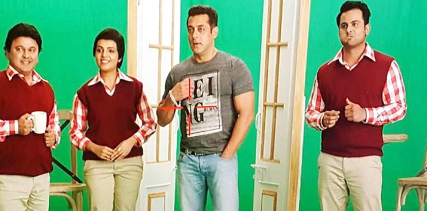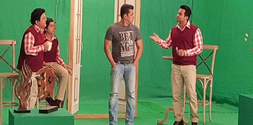 Salman Khan is snapped during the shoot of this promo along with Ali Asgar, Sanket Bhosale and Sugandha Mishra.