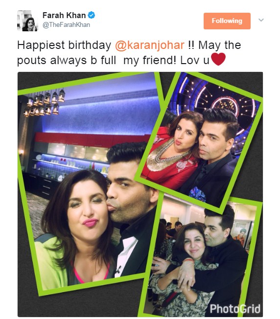 Farah Khan sends her good wishes to Karan Johar on his birthday.