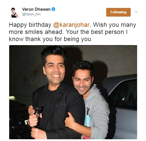 Varun Dhawan, Karan's 'student' wishes Karan Johar on latter's birthday.