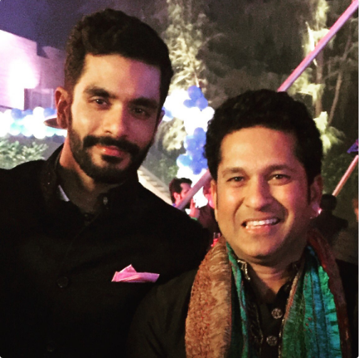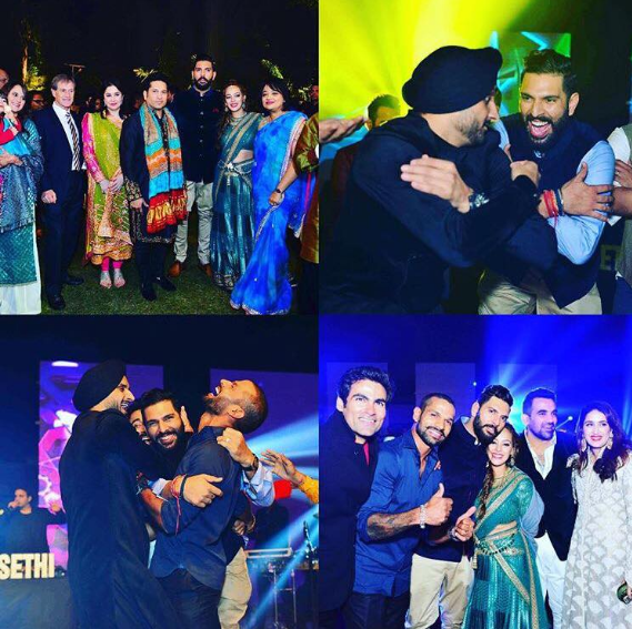 Sachin Tendulkar with Angad Bedi at Yuvraj Singh and Hazel Keech reception