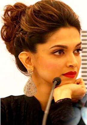 Here, DP is seen in a structured yet a loose bun, with tiny wisps of hair loosened from the sides. This hairstyle can really go well with sarees and gowns. A must try elegant hairstyle that would suit everyone.