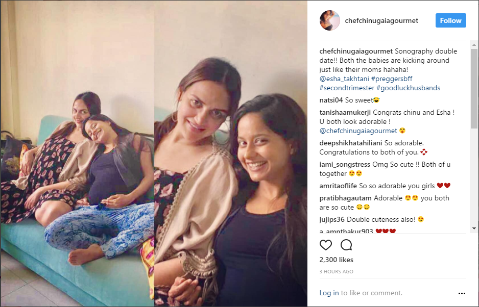 She captioned this picture as, “Sonography double date!! Both the babies are kicking around just like their moms hahaha! @esha_takhtani #preggersbff#secondtrimester #goodluckhusbands.” [sic]
