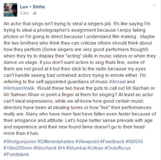 Now, her brother Luv Sinha has spoken up in defence of her and bashed the Malik brothers, Armaan and Amaal in a long post on his Facebook page. He writes,