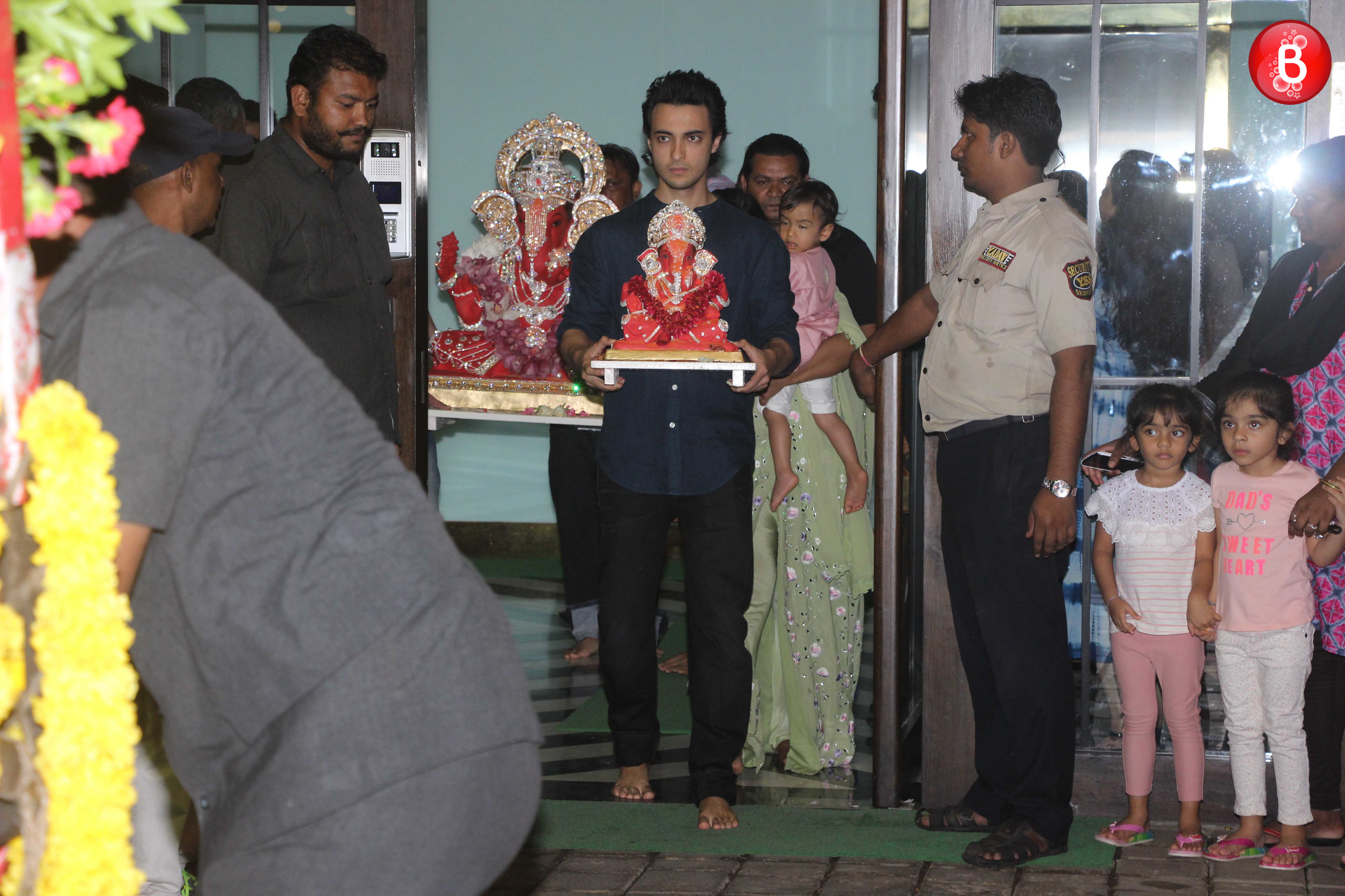 Aayush Sharma, Arpita Khan Sharma and Sohail Khan all set for Ganpati visarjan.