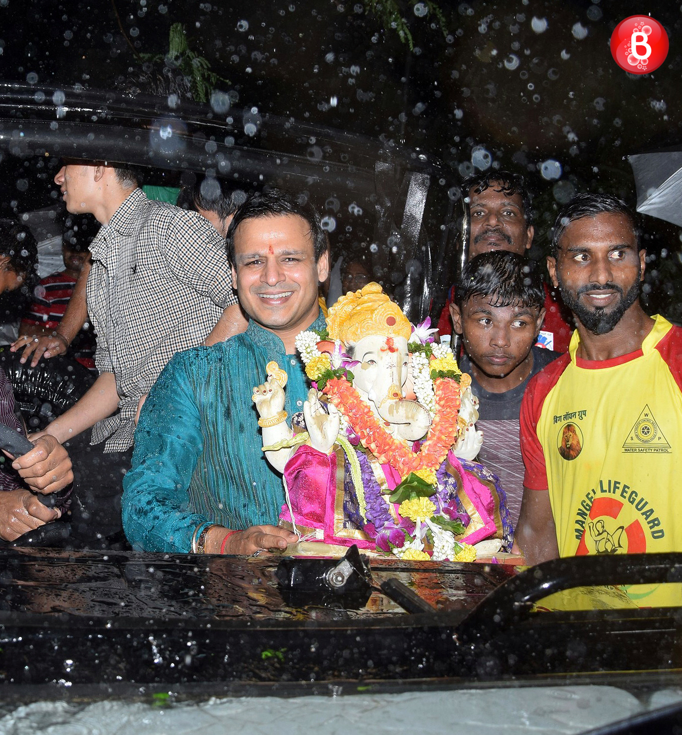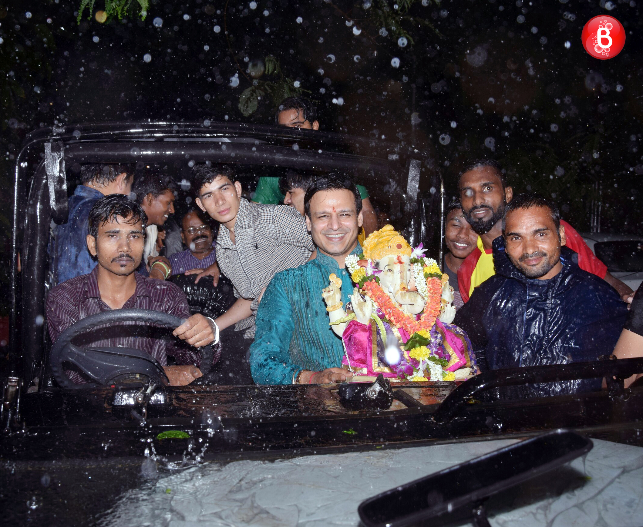 Vivek Oberoi on his way for Ganpati visarjan.