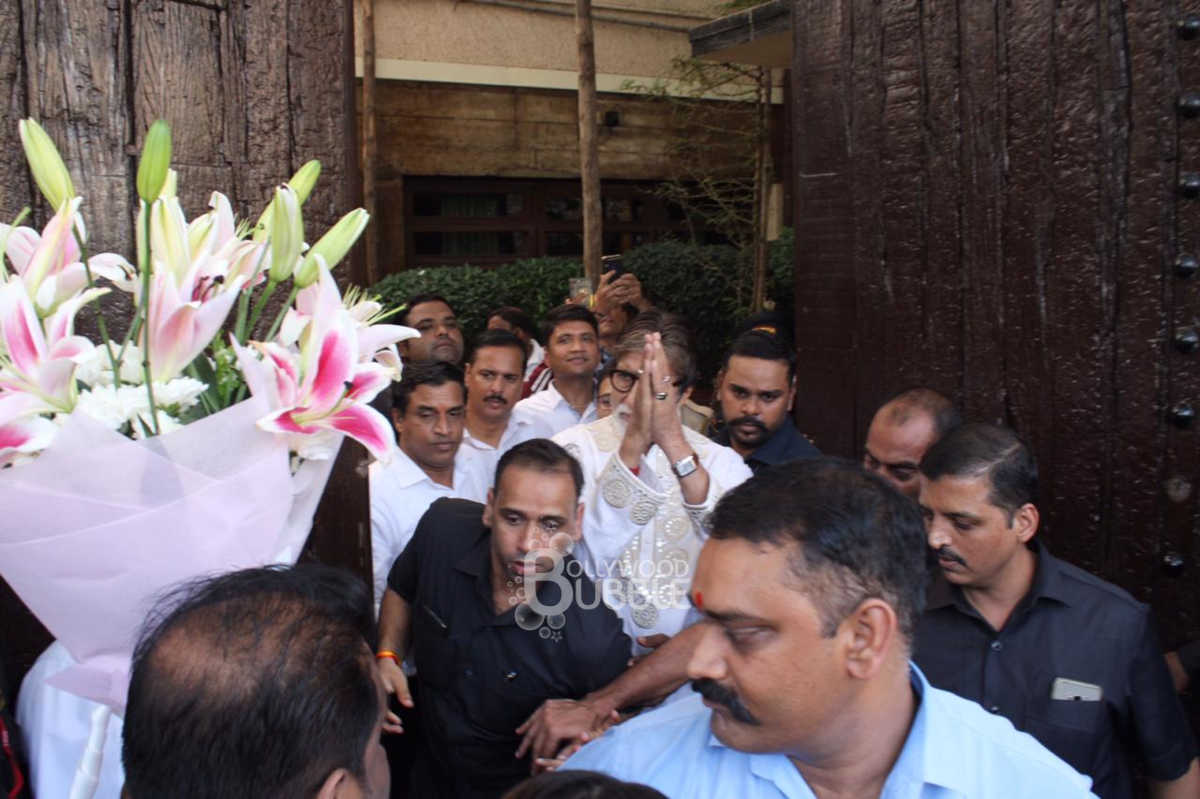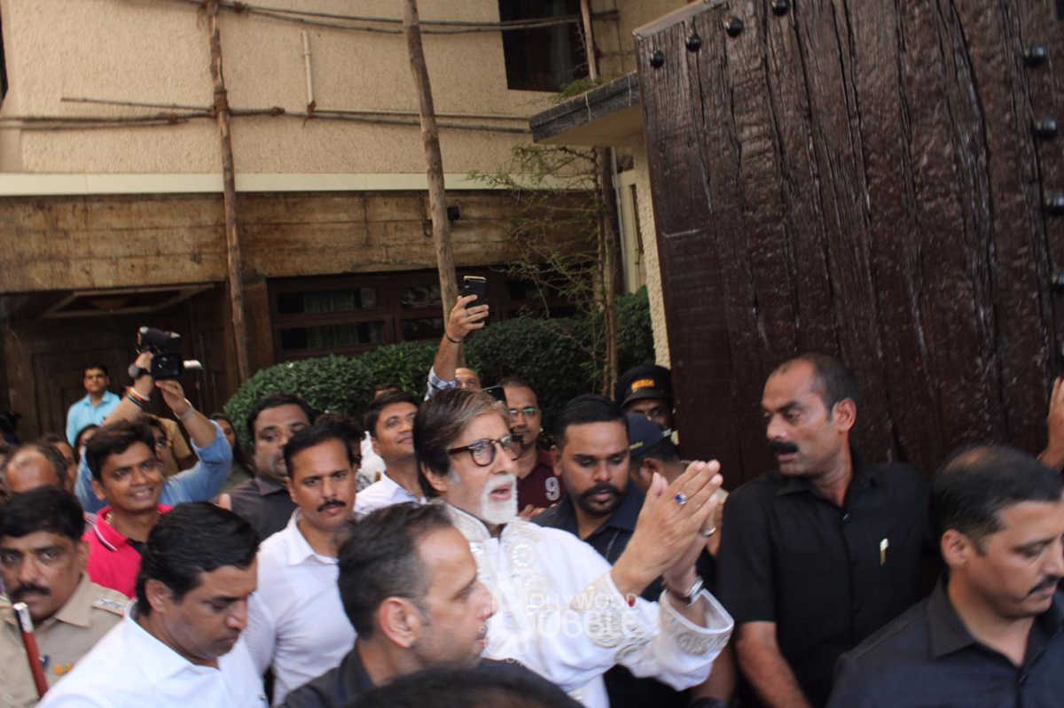 The veteran actor was seen thanking his fans outside his residence in Juhu.