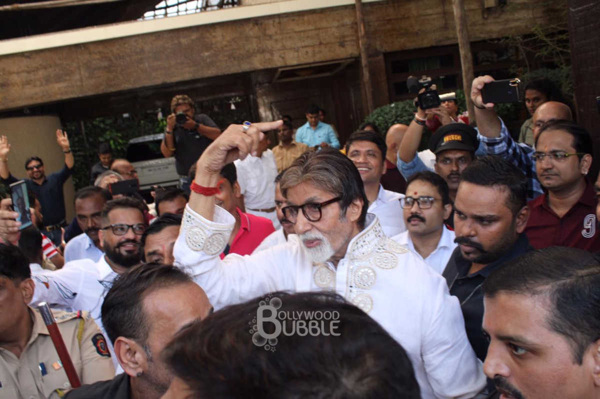 The legendary actor of Bollywood, Amitabh Bachchan looks amazing as he meets and greets his fans on his 77th birthday today. Check out the pictures right here.