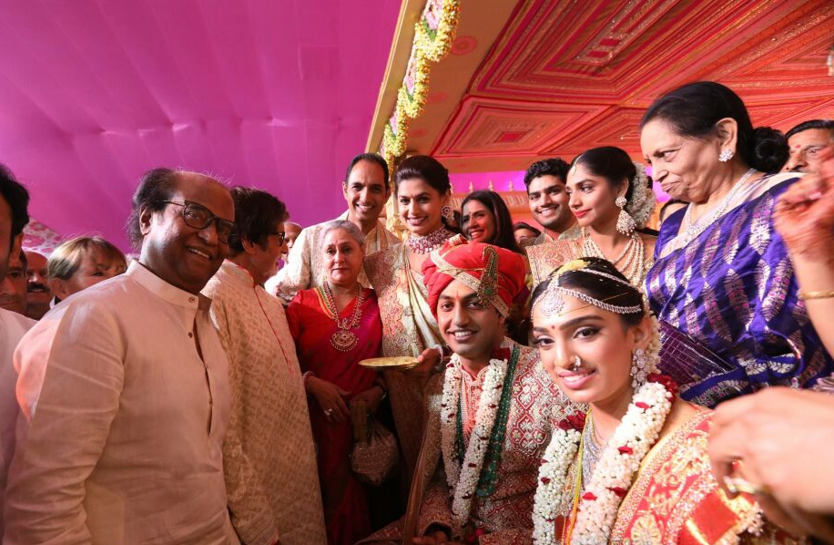 Amitabh Bachchan, Jaya Bachchan and Rajinikanth snapped at Keshav Reddy and Veena Tera's wedding.