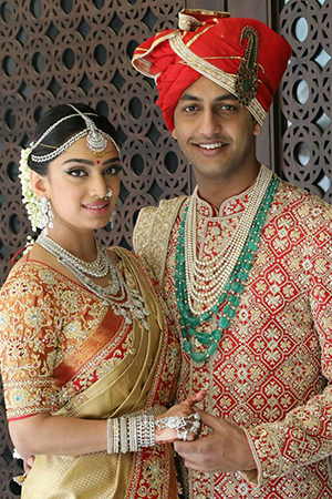 Keshav Reddy and Veena Tera pose for the camera during their wedding ceremony.