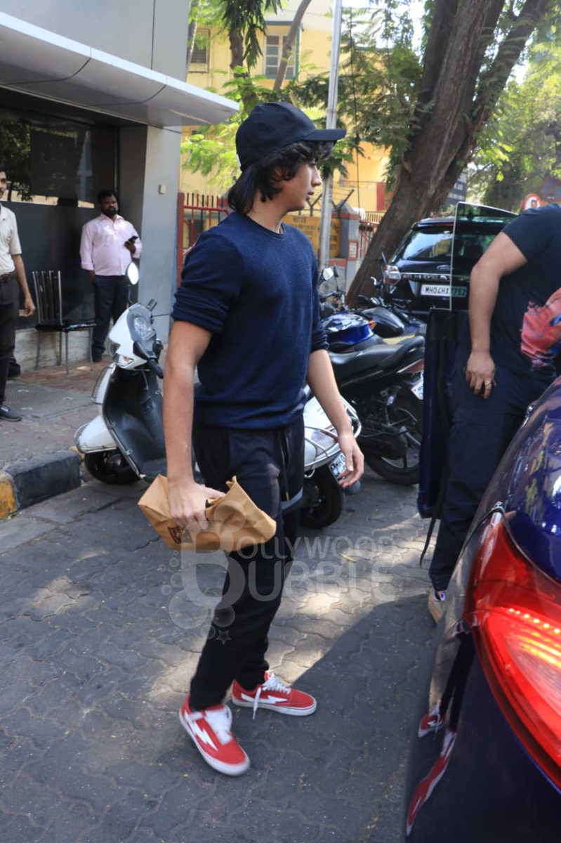 Dressed in casuals and sporting a cap, Arhaan was seen carrying a take-out from the restaurant.
