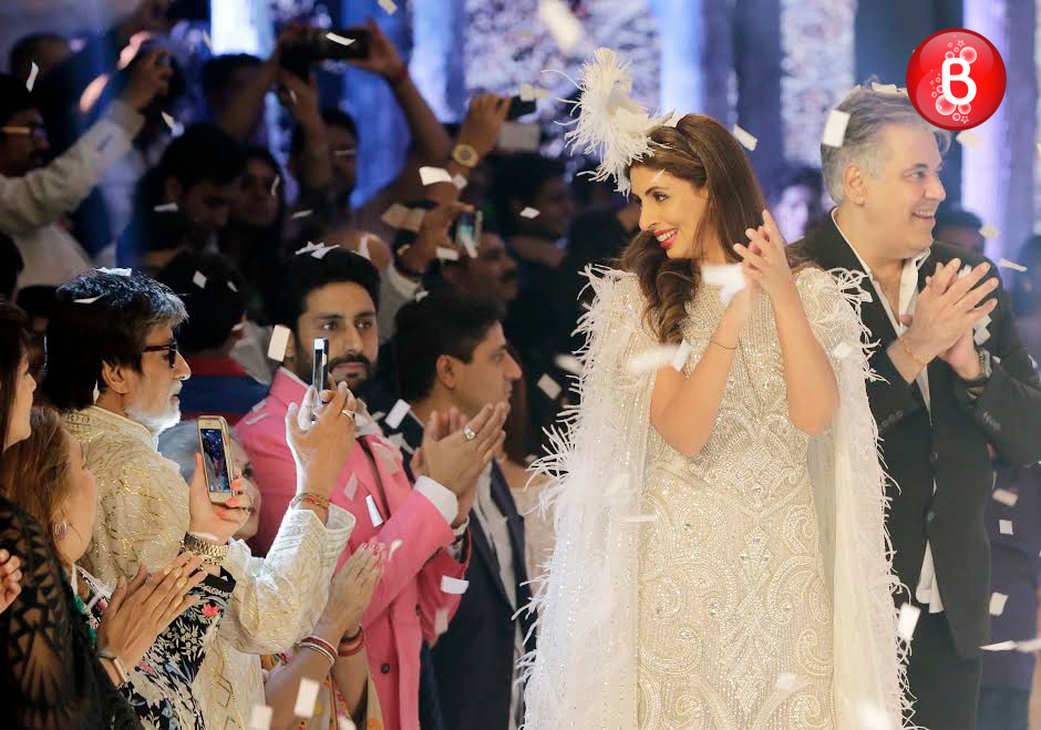 Amitabh Bachchan and Jaya Bachchan’s daughter Shweta Bachchan Nanda recently walked the ramp for designers Abu Jani and Sandeep Khosla. The star-daughter looked stunning in the angel white gown. To support her, the Bachchans, Amitabh Bachchan, Jaya Bachchan and Abhishek Bachchan, had attended the fashion show. Big B and Jaya looked quite elated to see their gorgeous daughter at the ramp. Other celebs like Karan Johar and Sonali Bendre were also spotted at the event.