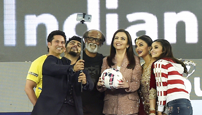 Many Bollywood stars were present at the opening ceremony of Indian Super League 2015 in Chennai on Saturday. The ‘Gunday’ actor Arjun Kapoor hosted ISL opener and had a gala time “hanging out” with legendary names like southern superstar Rajinikanth, cricket legend Sachin Tendulkar, Aishwarya Rai Bachchan, Amitabh Bachchan, Alia Bhatt and many more. Aishwarya Rai performed on songs from various hit films — including Crazy Kiya Re from Dhoom 2, Dola Re from Devdas and a song from Robot. While Alia Bhatt performed ISL’s theme song — Let’s Football and to some of her famous hits including Radha and Disco Deewane. Have a look at these candid moments of Bollywood celebrities at opening ceremony of ISL 2015.