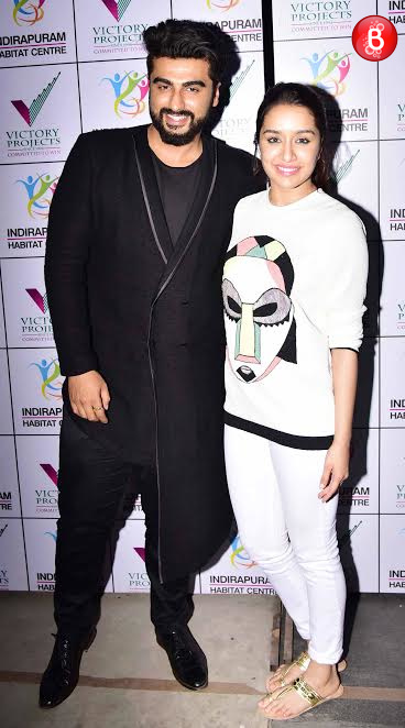 Arjun Kapoor and Shraddha Kapoor happily pose for the cameras at the event.
