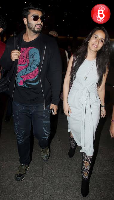 It was just yesterday, that we had reported that the shooting schedule of Mohit Suri’s ‘Half Girlfriend’ has wrapped up in New York City. The lead actress of the movie, Shraddha Kapoor had even shared an adorable picture with her co-star Arjun Kapoor on her social handle with this news. Being the first Indian movie to be shot in the United Nations headquarters, this cute onscreen couple of Riya and Madhav aka Shraddha and Arjun returned back to their hometown Mumbai together. Snapped by our shutterbugs at Mumbai international airport on Thursday midnight, both of them looked relaxed and happy returning home and it is much evident with these pictures. ‘Half Girlfriend’ is an adaptation of author Chetan Bhagat’s novel of the same name which brings the pairing of Arjun-Shraddha together for the first time on silver screens.