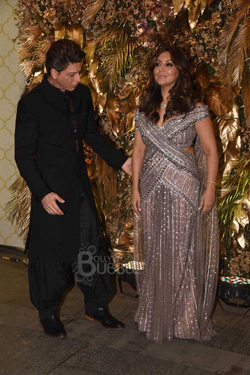 The King Khan of Bollywood, Shah Rukh Khan arrived with his wife, Gauri at the wedding reception. The couple looked amazing in their stylish outfits.