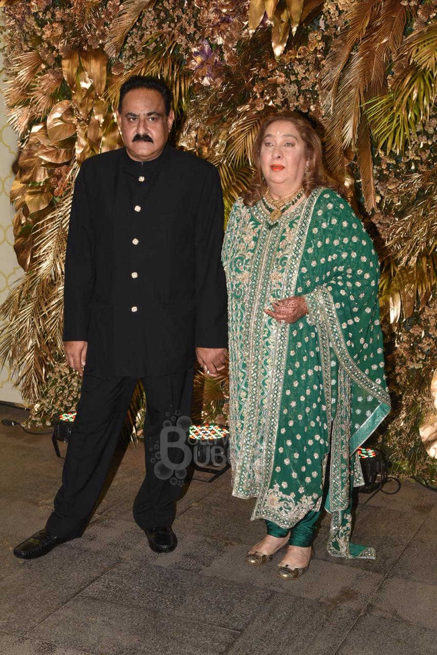 Armaan Jain's parents, Reema and Manoj looked quite happy at their son's wedding reception. Dressed up in the traditional outfits, they struck a picture perfect pose for the photographers.