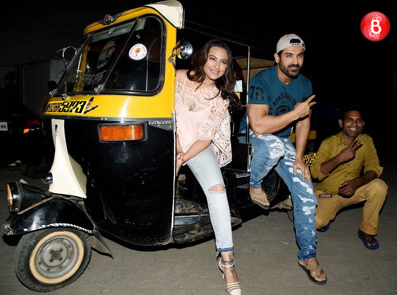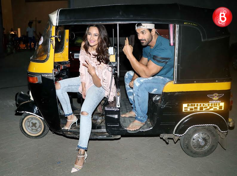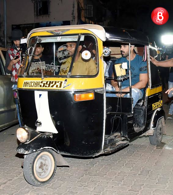 Bollywood hunk John Abraham choosing to travel in a public transport is not something new. The actor has been previously spotted travelling in an auto and on Friday evening yet again our cameraman saw this ‘Dishoom’ actor taking a ride to Gaiety Galaxy to catch the show of ‘Force 2’. The actor had taken this ride from Mehboob Studio where he first posed along with his co-star Sonakshi Sinha and even the rickshaw driver. And what added to the beauty at Gaiety Galaxy was that John watched it with his parents. Take a look at the pictures of John’s auto ride…
