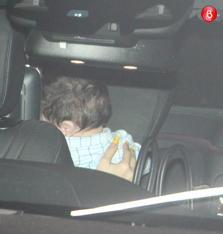 Taimur Ali Khan and Kareena Kapoor Khan spotted outside Tusshar Kapoor's house.