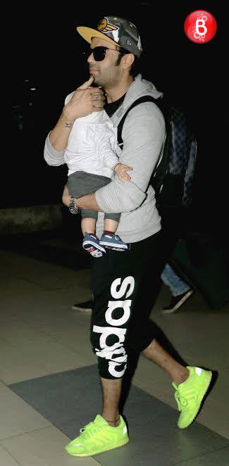 Manish Paul spotted with his baby boy Yuvann at the Airport