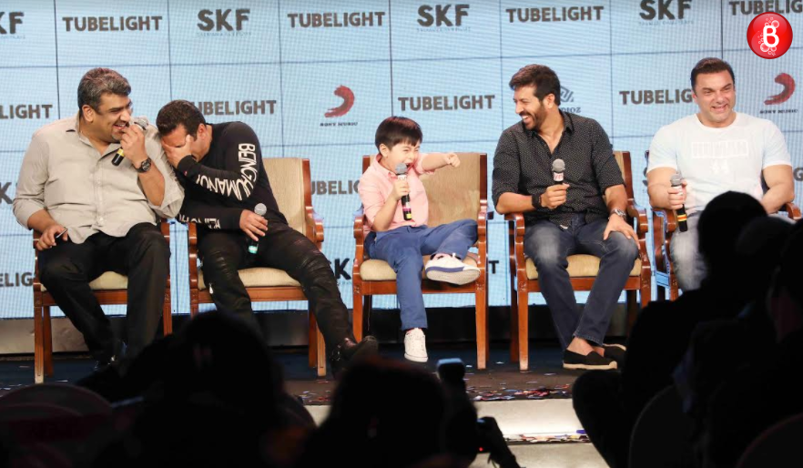 Actor Salman Khan held a special event for his soon-to-release movie ‘Tubelight’. The event was basically to introduce his little co-star Matin Rey Tangu. And their bonding on stage was too much fun. They engaged in a fun banter and little Matin even danced with Salman Khan on the song ‘Radio’. Salman was as usual in a fun mood as he even danced with his brother Sohail Khan on stage. They did the ‘naagin’ dance and their off-screen bhaihood was too cute. They play brothers in the movie too, however Sohail Khan plays the elder brother. Director Kabir Khan and COO of Salman Khan Productions, Amar Butala were also present. (Also Read: Salman Khan-starrer ‘Tubelight’ shortened by 14 minutes)