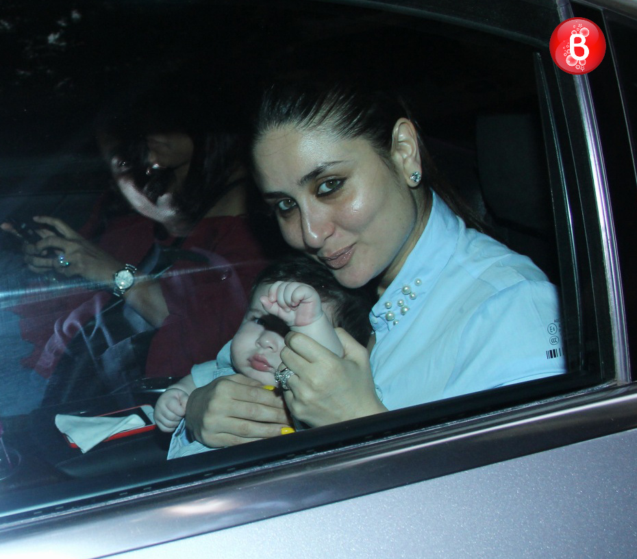 It so happened, that Tusshar Kapoor’s little one, Laksshya, celebrates his first birthday today. And to mark the occasion, the Kapoors have invited a galore of celebrities. And it was then that we spotted little Taimur making his way into the party, comfortably settled in the arms of mommy Kareena Kapoor Khan.