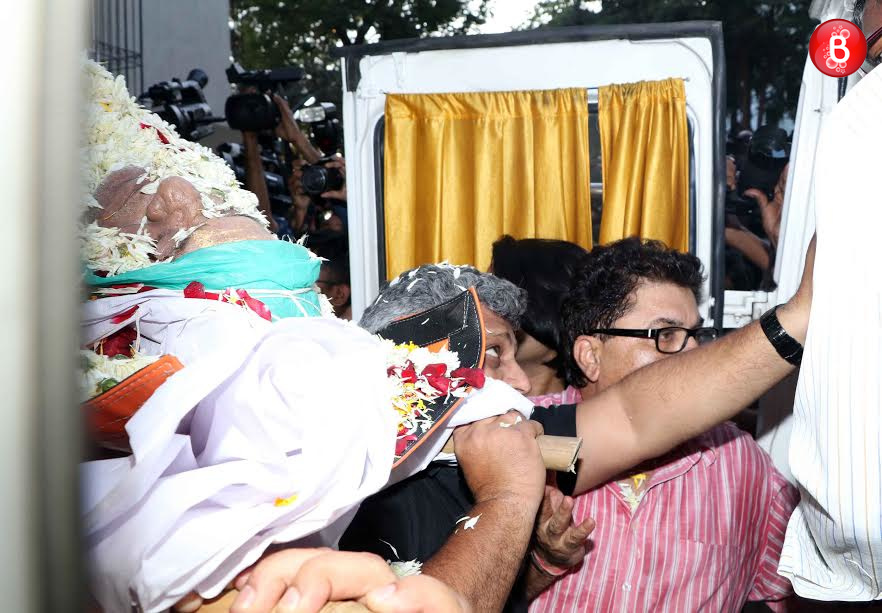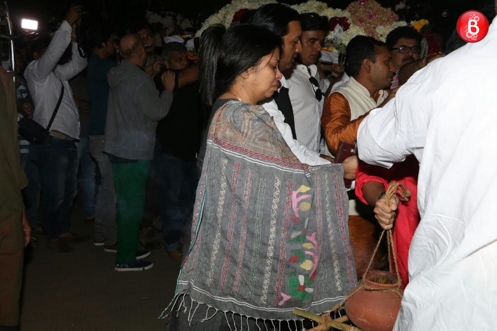 Veteran actor Om Puri’s funeral took place at a crematorium in Oshiwara on Friday evening. The actor had passed away the same day in morning due to a cardiac arrest. Om Puri’s son Ishaan Puri was seen performing the last rites of his father along with his mother Nandita Puri. Apart from the family, bereaved with the sudden demise of the actor, B-Town celebs had also made their way to the funeral to pay their last respects. Amitabh Bachchan with son Abhishek Bachchan, Anil Kapoor, Farhan Akhtar, Nawazuddin Siddiqui, Manoj Bajpayee, Anupam Kher, Paresh Rawal, Sonu Nigam and others were snapped by our shutterbugs at the crematorium. Certainly, this was a final farewell to the versatile performer from Bollywood and his dear ones and like everyone we would miss him as well.