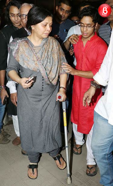 Nandita Puri and Ishaan Puri, while carrying on the last rites of the actor.