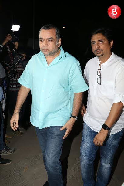 Paresh Rawal and Umesh Shukla arrives at Om Puri's funeral to pay his respects.