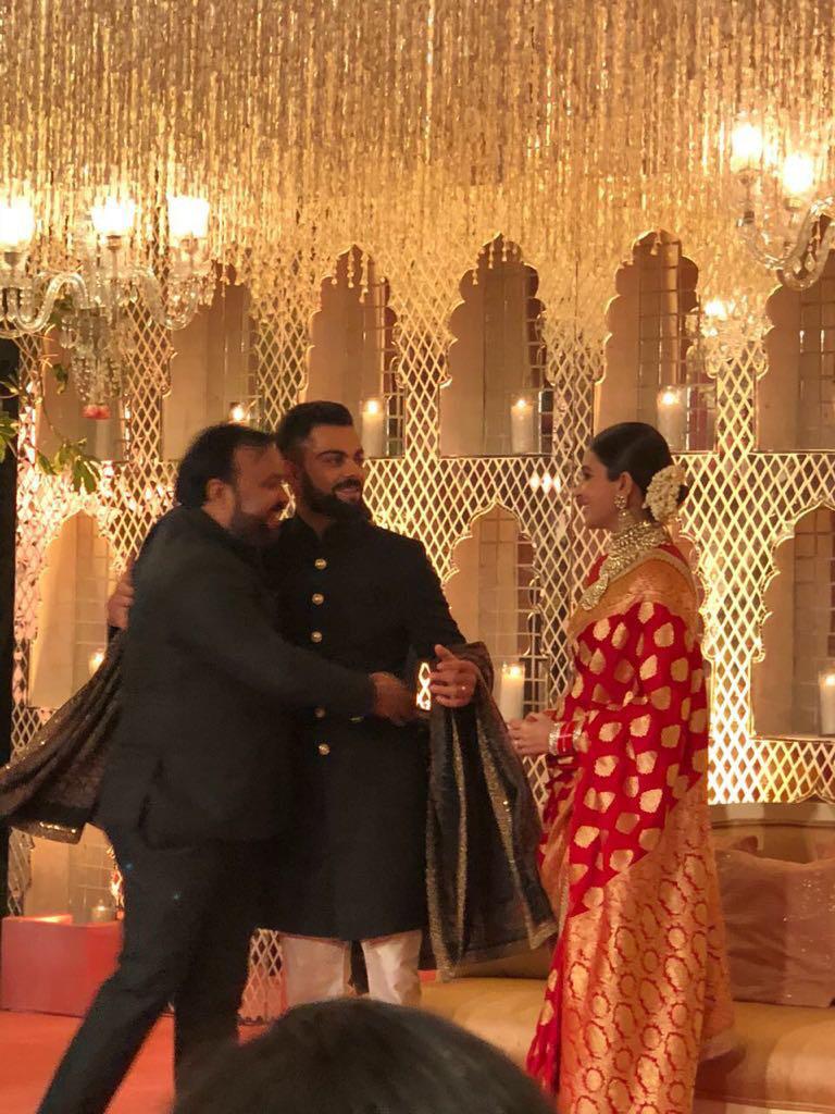 Virat in his black sherwani and Anushka in her red attire looked stunning.
