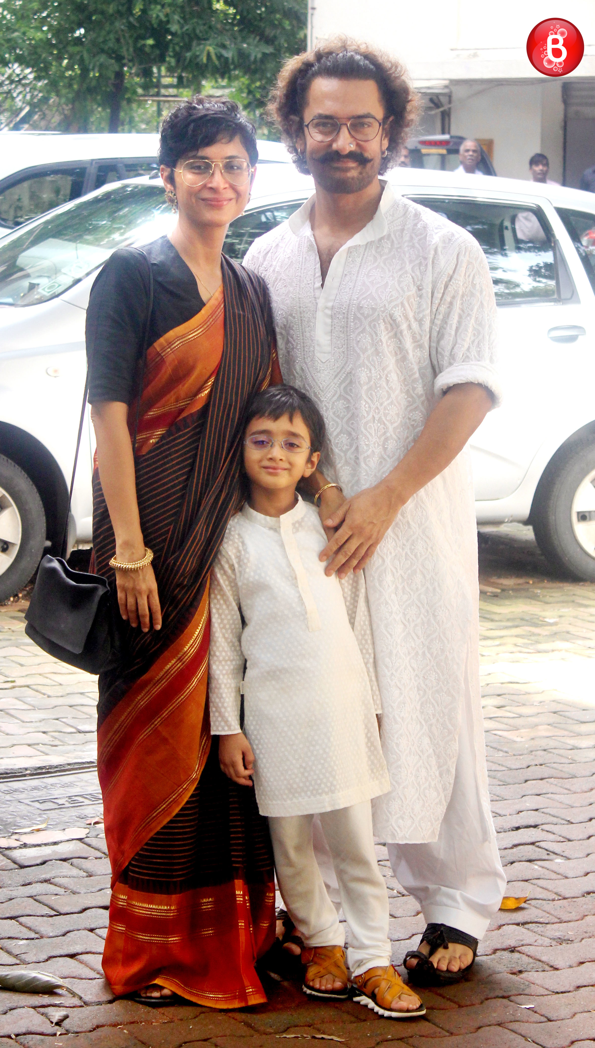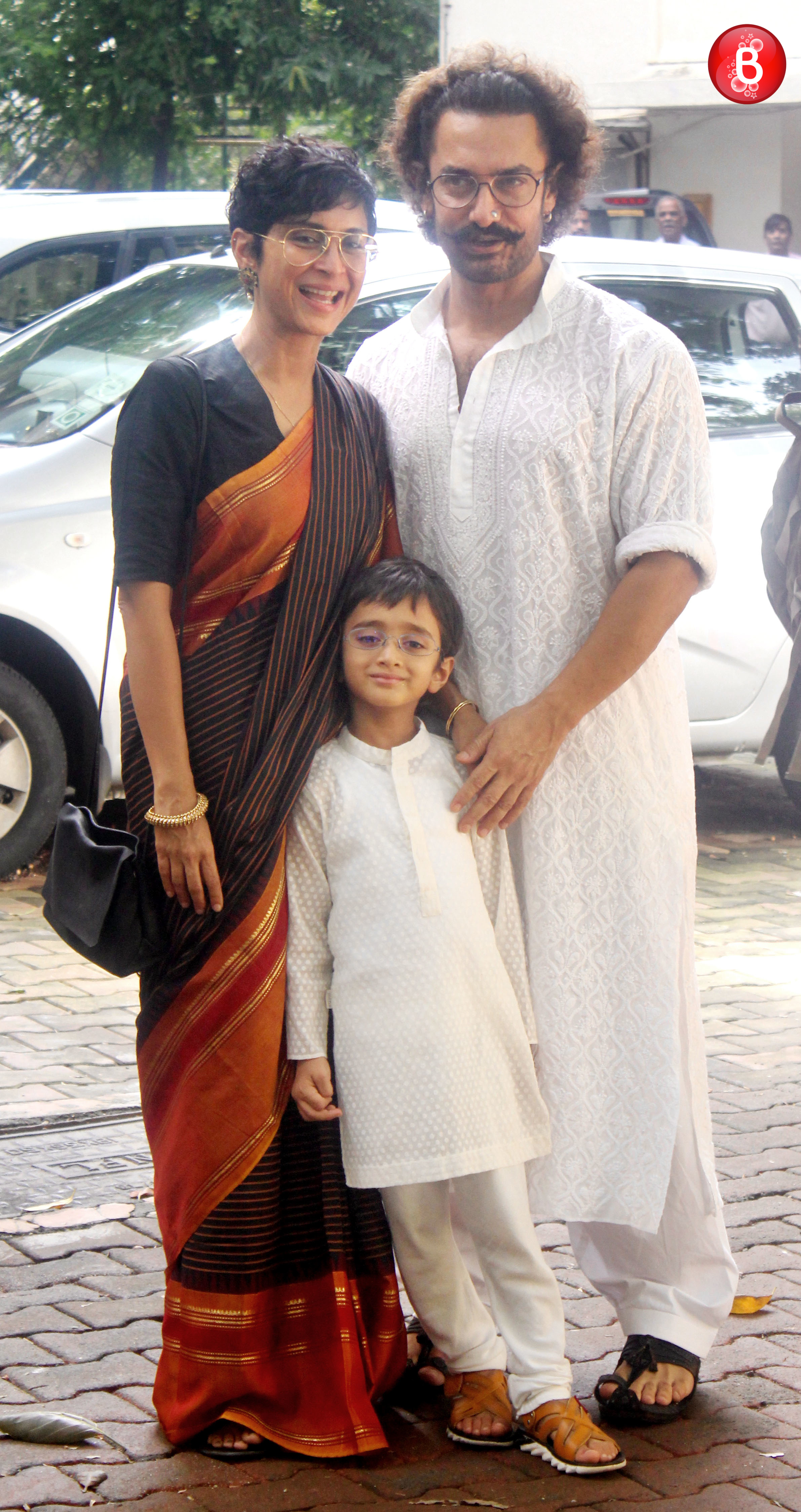 Aamir Khan, Kiran Rao and Azad get clicked outside his residence.