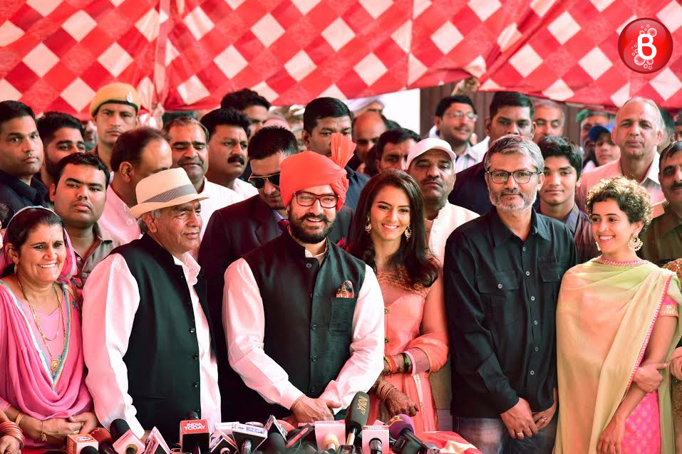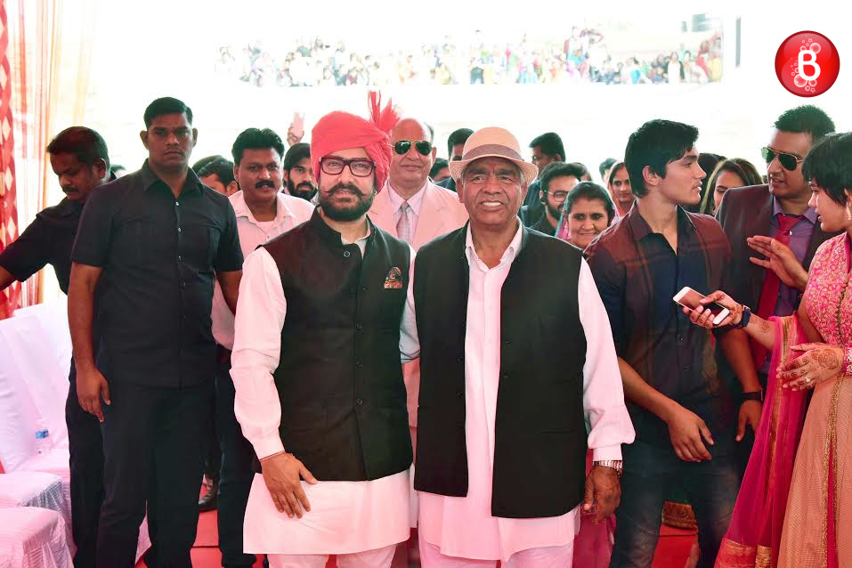 It’s no surprise that it was a big day for the Phogat family on Sunday as wrestler Geeta Phogat was all set to tie the knot in her village Balali situated in Haryana. Aamir Khan, who will be seen in a biopic on the life of Phogats, too made his way at the wedding ceremony adding to the beauty of this happy occasion. Aamir plays the part of wrestler turned coach Mahavir Singh Phogat (Geeta’s father) in this biographical sports drama. The actor wished Geeta on her new beginning in life who is marrying her fellow wrestler Pawan Kumar. Aamir was seen dressed in a white kurta pajama, black bundi and red safa, as perfect as a family member from the bride’s side. Further, he even addressed the media and was seen accompanied by Nitesh Tiwari, director of ‘Dangal’ here. Have a look at the pictures from this wedding ceremony clicked by our cameraman.
