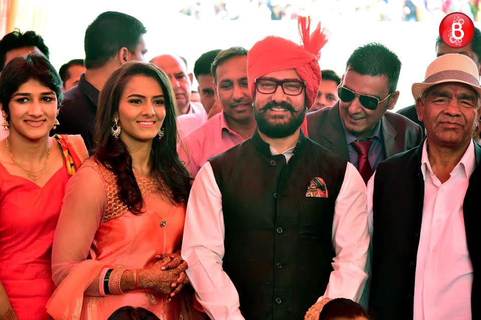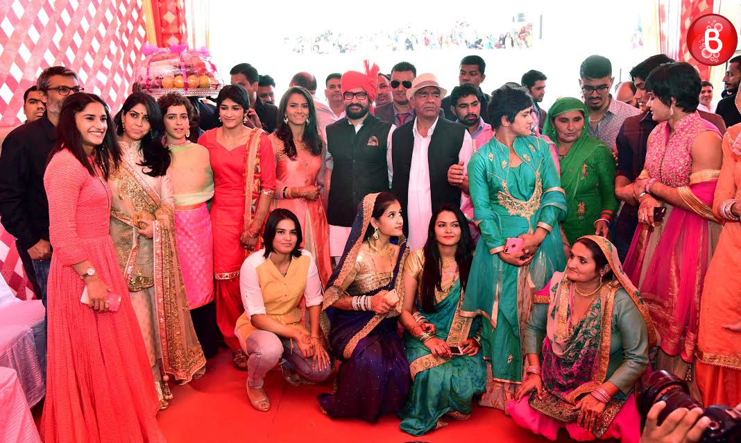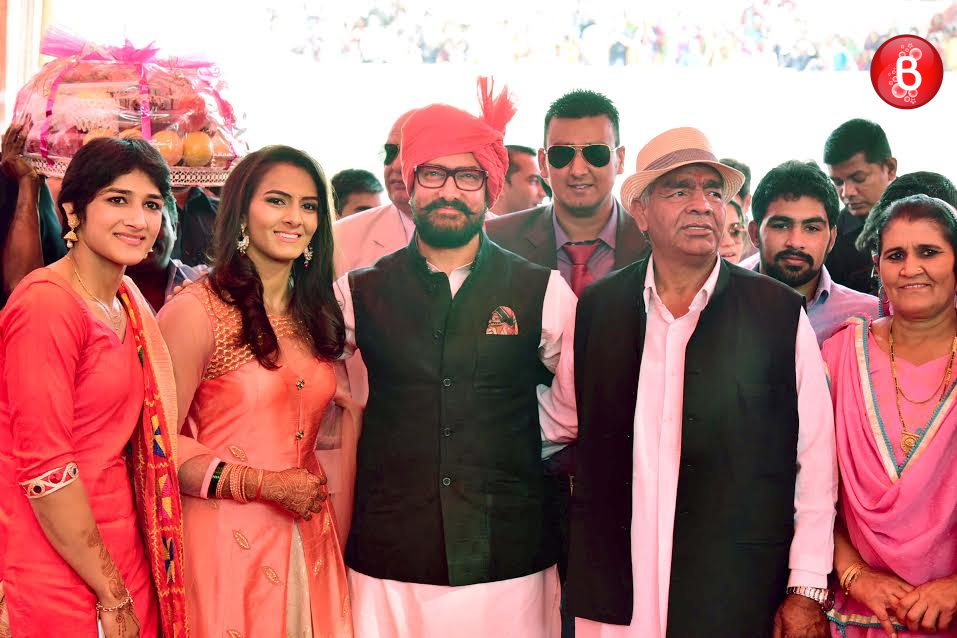 Aamir Khan, Mahavir Singh Phogat, Geeta Phogat, Babita Phogat with family and guests.