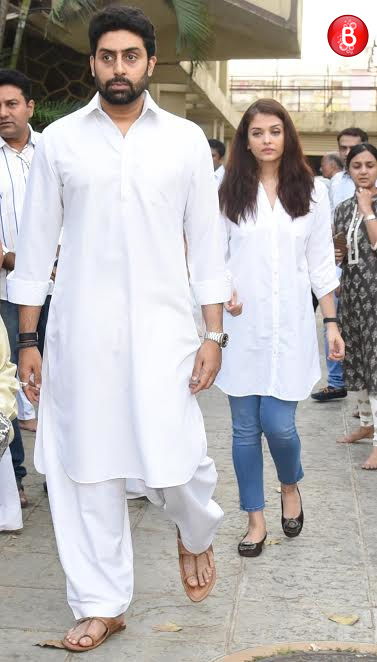 Abhishek Bachchan and Aishwarya Rai Bachchan are stepping out after attending their neighbour’s funeral.