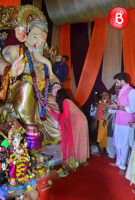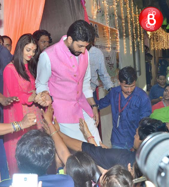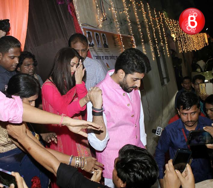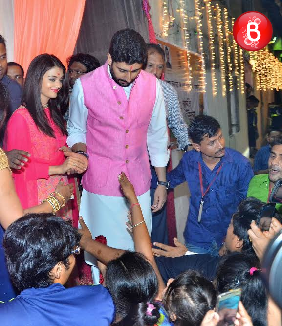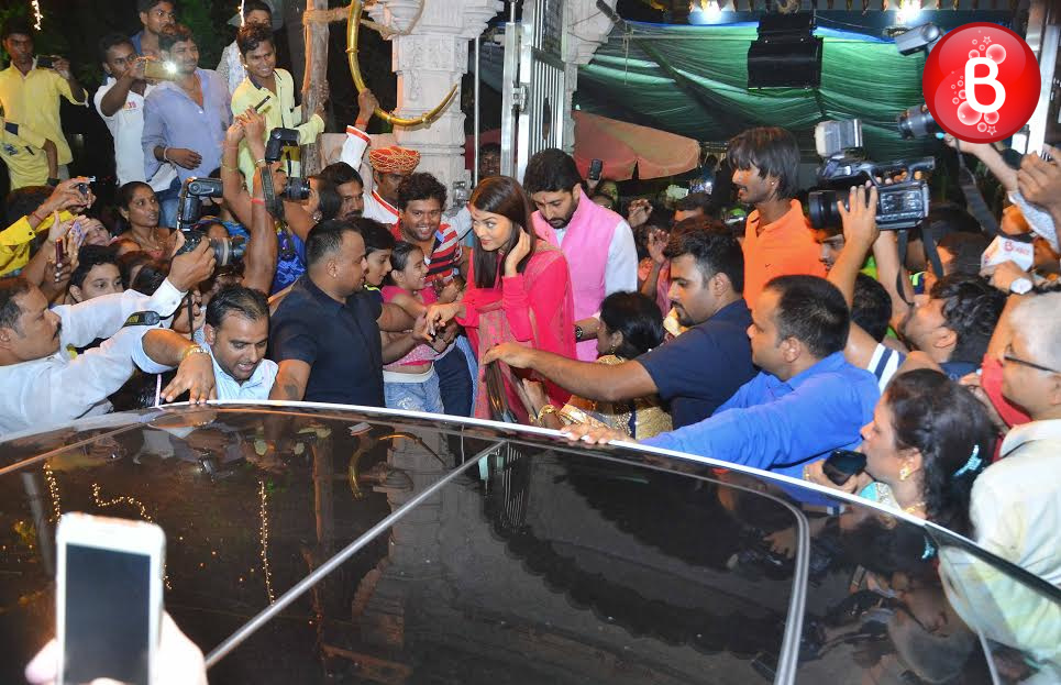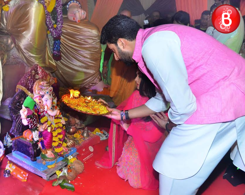 Aishwarya Rai Bachchan is been receiving a lot of praises ever since the teaser of her upcoming film ‘Ae Dil Hai Mushkil’ is released. Her mesmerising presence with co-star Ranbir Kapoor also speculated rumours that her hubby Abhishek Bachchan and his family are upset with those steamy scenes between them. However, Big B recently clarified that he has not watched the teaser still. And now, our shutterbugs have snapped this beautiful couple of Abhi-Ash, who certainly prove that all is well between them. On Saturday evening, the couple made their way to visit Mankeshwar Mandal’s Lord Ganpati Pandal at Byculla. Looking happy the couple took blessings from Ganpati Bappa and even performed the evening aarti. Dressed beautifully in a traditional attire, here we bring those adorable pictures of their visit.