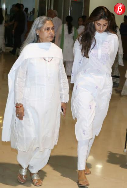 Jaya Bachchan and Shweta Bachchan Nanda at Suniel Shetty's father's ‘chautha’ ceremony.