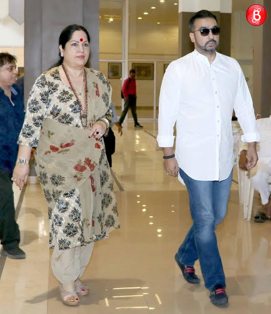 Raj Kundra and Shilpa Shetty Kundra's mother Sunanda Shetty at Suniel Shetty's father's ‘chautha’ ceremony.