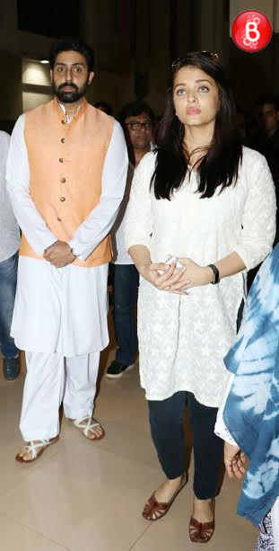 Abhishek Bachchan and Aishwarya Rai Bachchan at Suniel Shetty's father's ‘chautha’ ceremony.