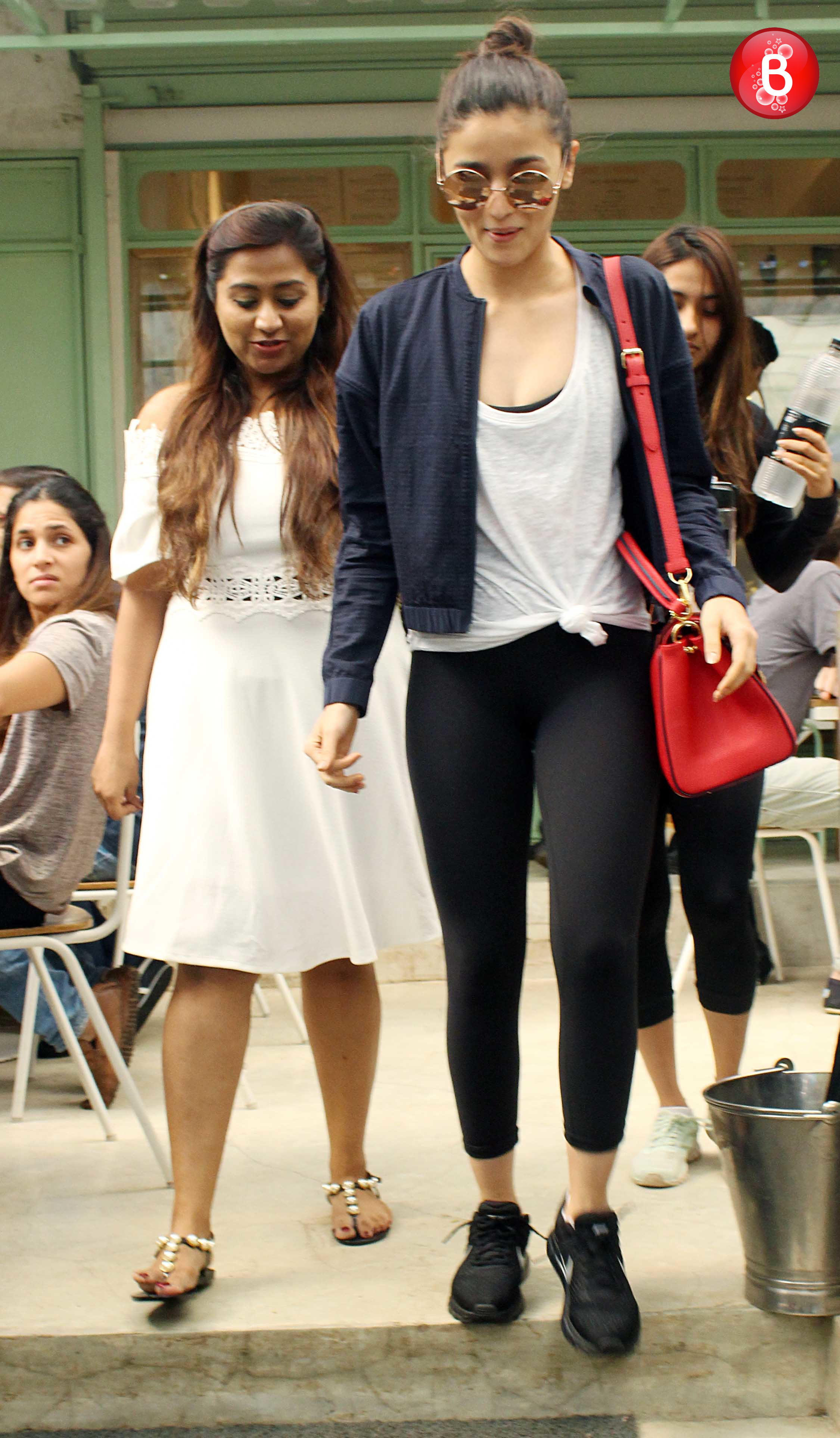 Alia Bhatt is snapped taking a leave from the restaurant along with her friend.