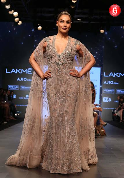 Bipasha Basu walks the ramp for designer duo Falguni and Shane Peacock at the Lakme Fashion Week Summer/Resort 2017.