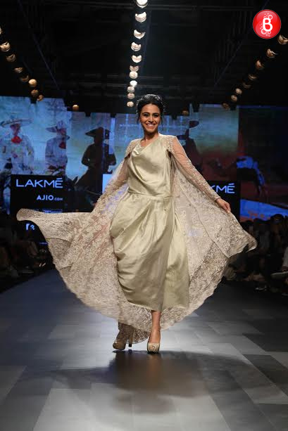 Nimrat Kaur walks the ramp for designer duo Sonam and Paras Modi at the Lakme Fashion Week Summer/Resort 2017.
