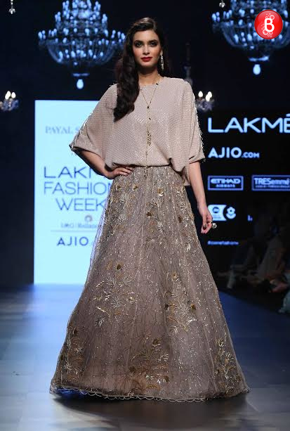 Diana Penty walks the ramp for designer Payal Singhal at the Lakme Fashion Week Summer/Resort 2017.
