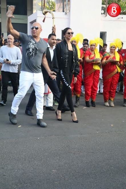 Seldom has anybody received such a grand welcome to India as the Hollywood hottie Vin Diesel. As promised earlier by Deepika Padukone, her ‘xXx: Return Of Xander Cage’ co-star Vin Diesel has flown down for the first time in India with his leading lady for promotions and they truly had the best welcome ever. They received a Marathi style welcome with Nashik dhol playing in the background.