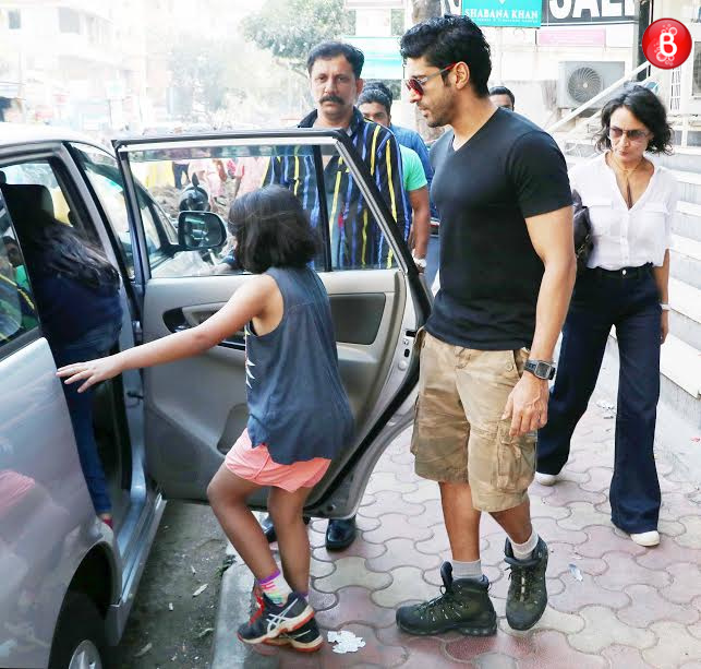 Farhan Akhtar is a doting father to his two daughters Shakya and Akira Akhtar. On Sunday, the actor-filmmaker had shared an inspiring birthday wish for his daughter Akira through his Twitter handle. Later, the same day he was spotted by our shutterbugs celebrating his darling daughter’s birthday. But he was not alone; ex-wife Adhuna Bhabani had also joined him to celebrate this special day for their daughter together. Apart from them, Akira’s friends were invite for the party too. (Also Read: Farhan Akhtar to play the character of THIS bollywood filmmaker in ‘The Fakir of Venice’)