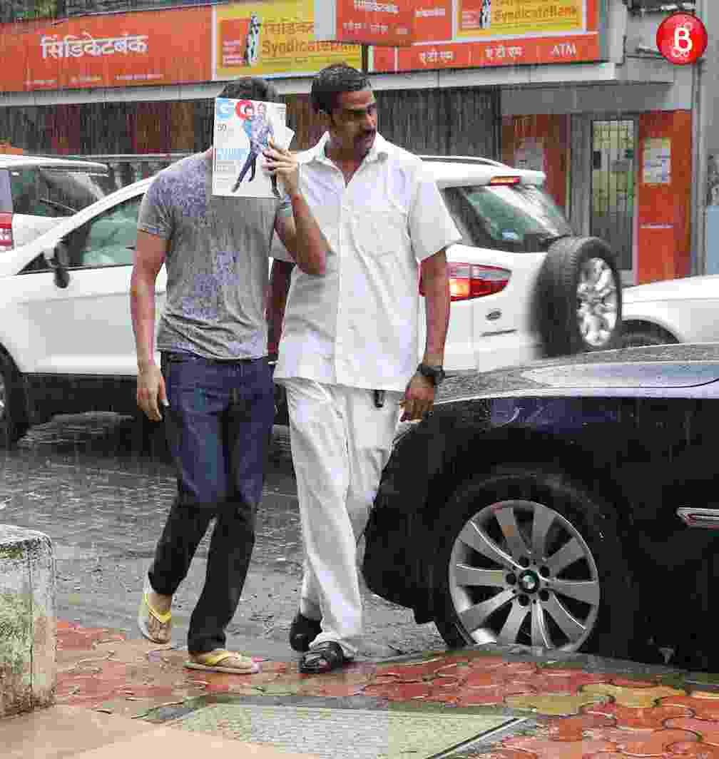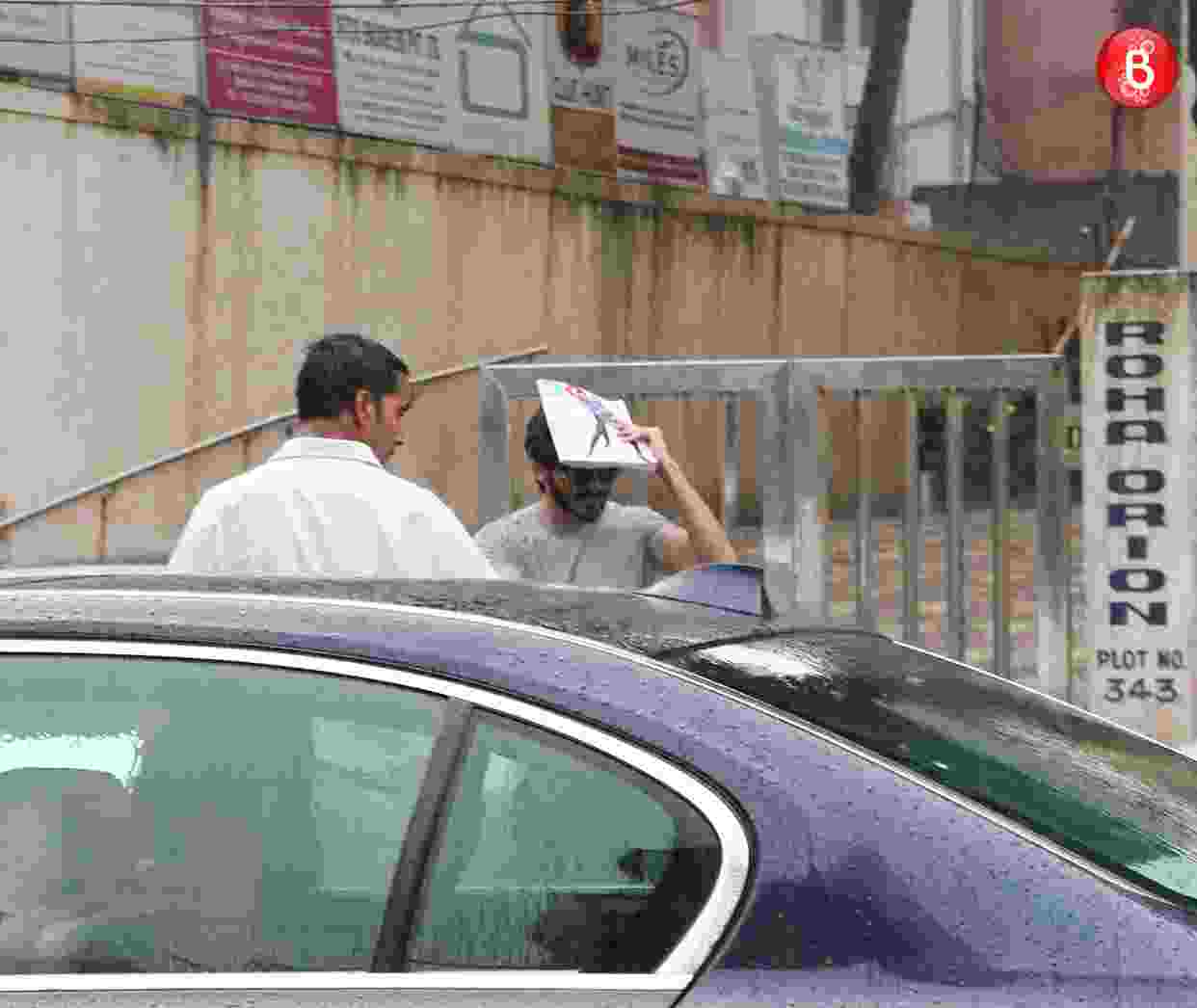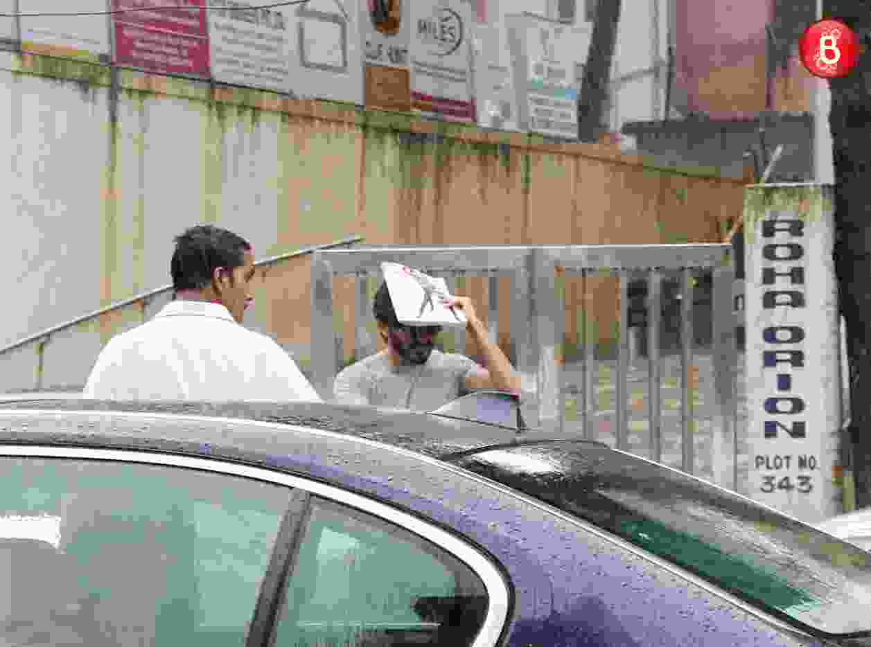 Harshvardhan Kapoor trying to avoid getting drenched.