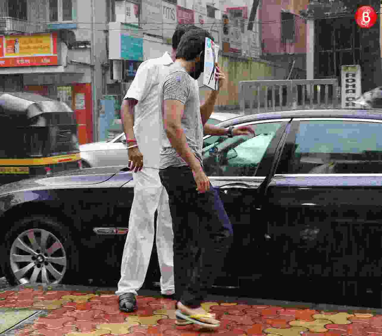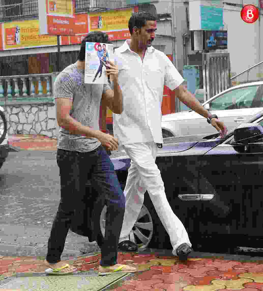 Harshvardhan Kapoor hides his while he comes out of a clinic.